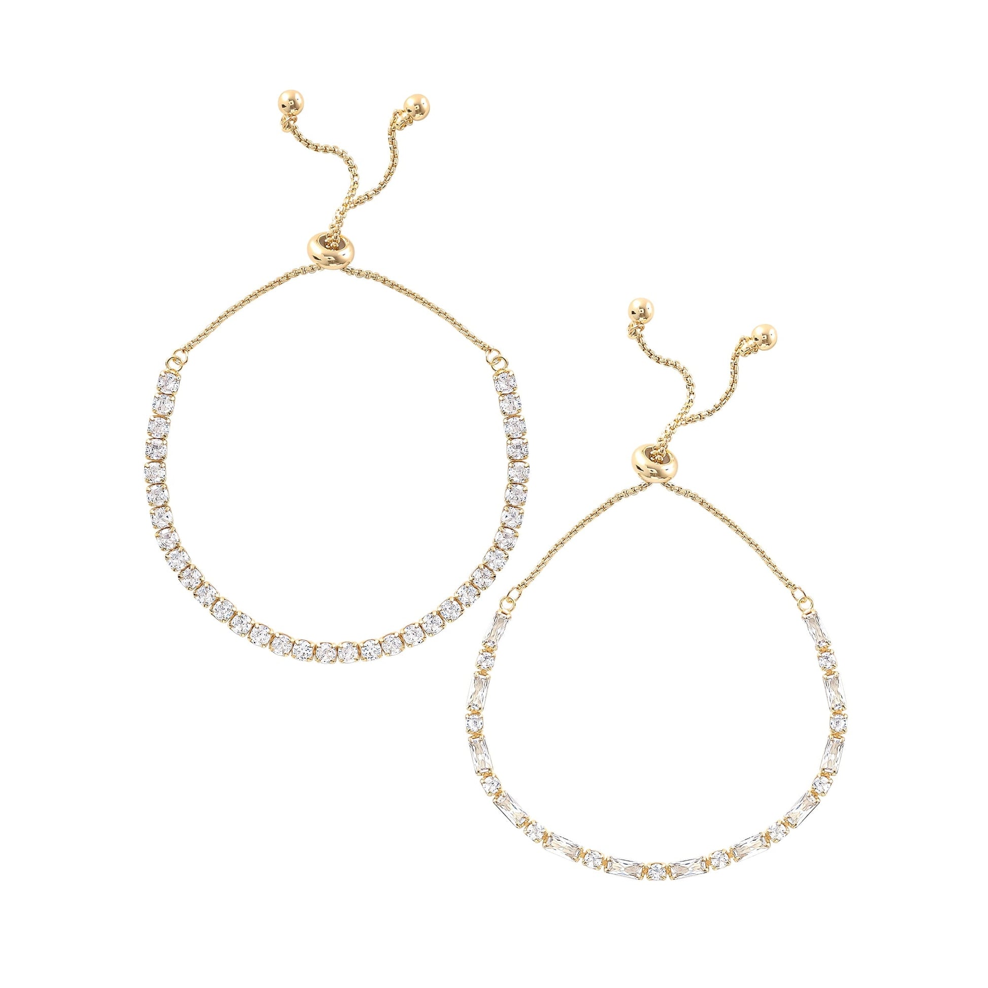 Believe by Brilliance Women's 14kt Gold Flash Plated Cubic Zirconia Adjustable Bracelet Set, 2
