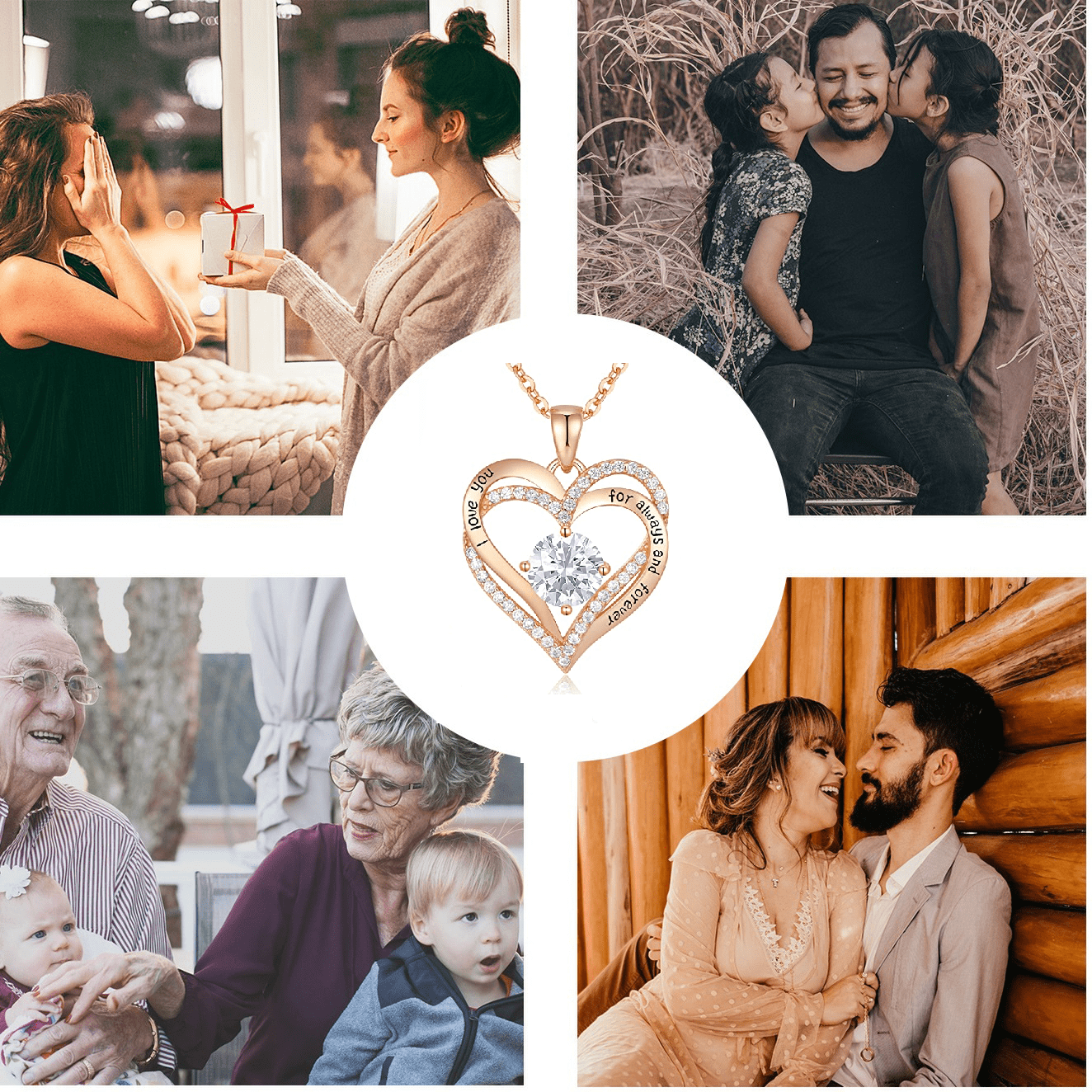 HESHPAWS Love Pendant Necklaces for Women with Birthstone Zirconia, Christmas Birthday Anniversary Jewelry Gift for Women wife