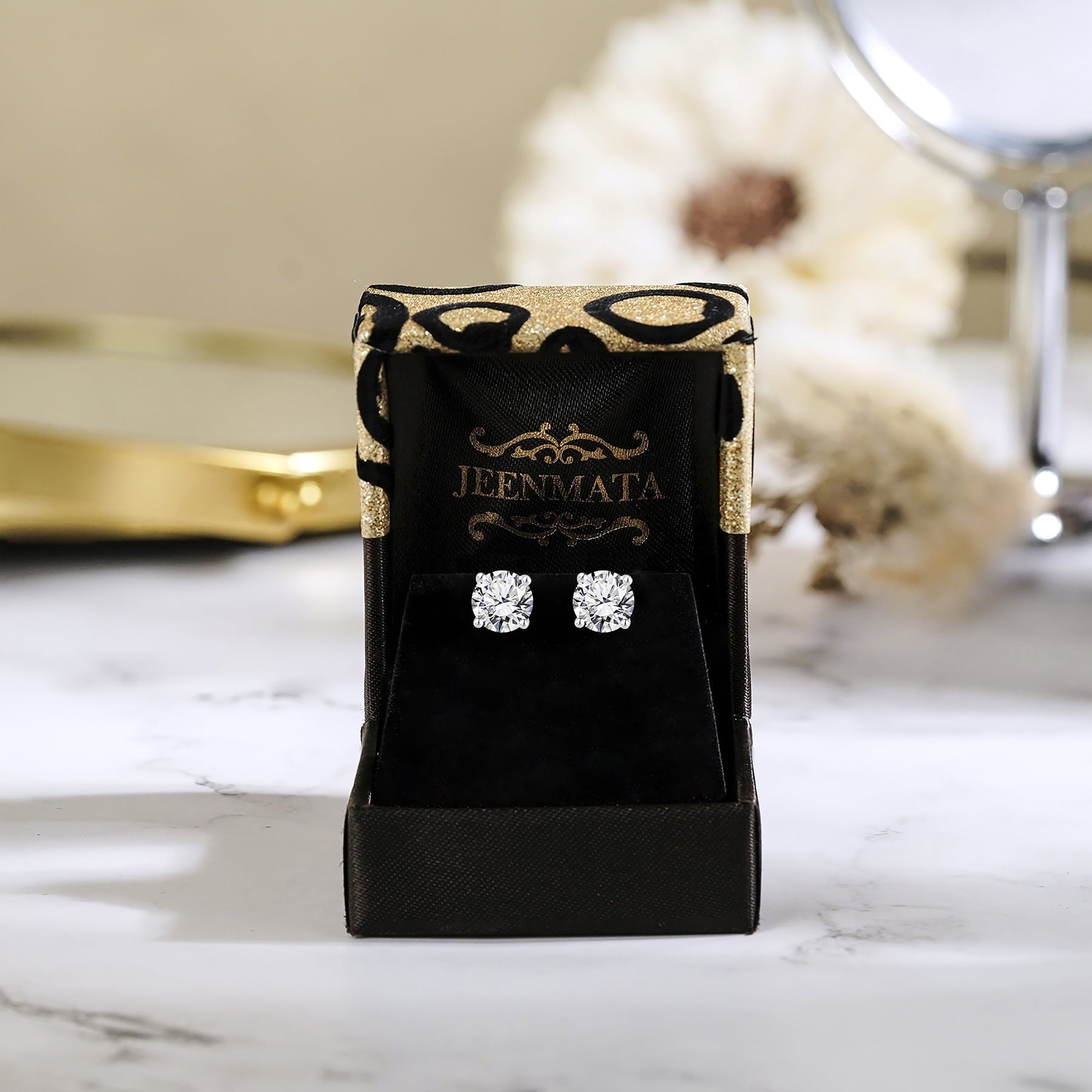JeenMata 4 Prong 2 Carat Round Shaped Moissanite Solitaire Stud Earrings in 18k White Gold Plating for Women