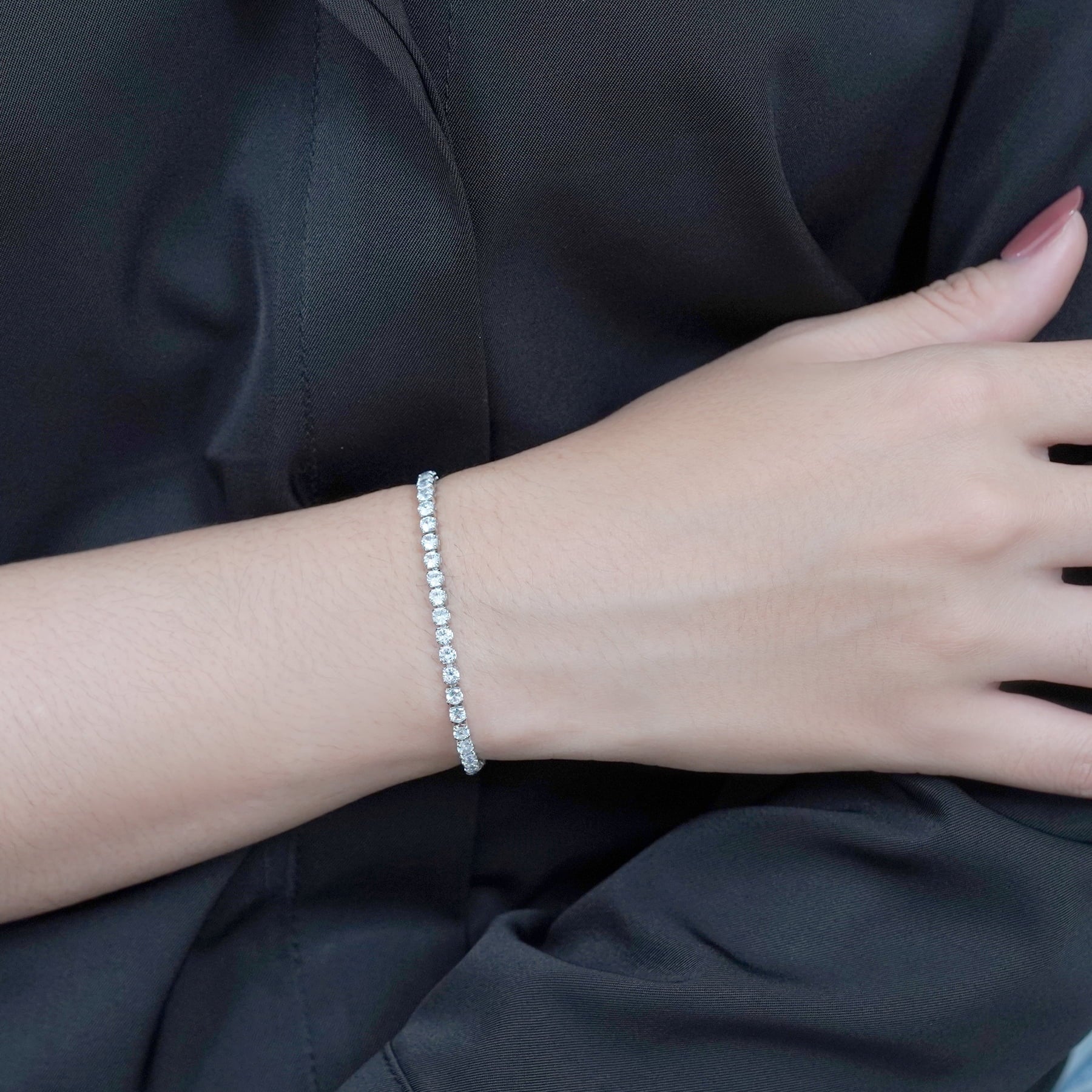 JeenMata 5.5 Carat Round Cut April - Cubic Zirconia - Birthstone Tennis Bracelet Eternity Design - White Gold Plating, Female, Adult