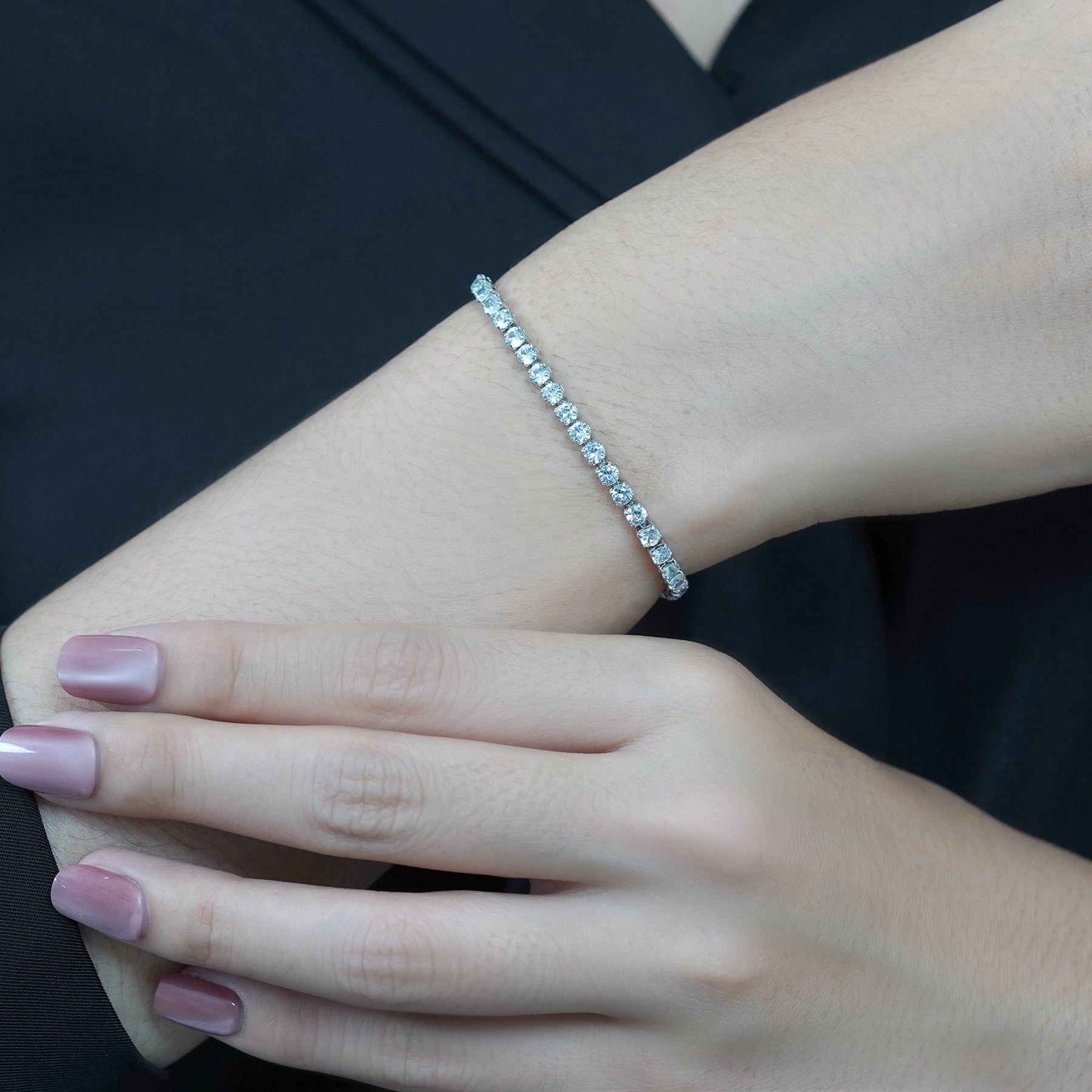 JeenMata 5.5 Carat Round Cut April - Cubic Zirconia - Birthstone Tennis Bracelet Eternity Design - White Gold Plating, Female, Adult