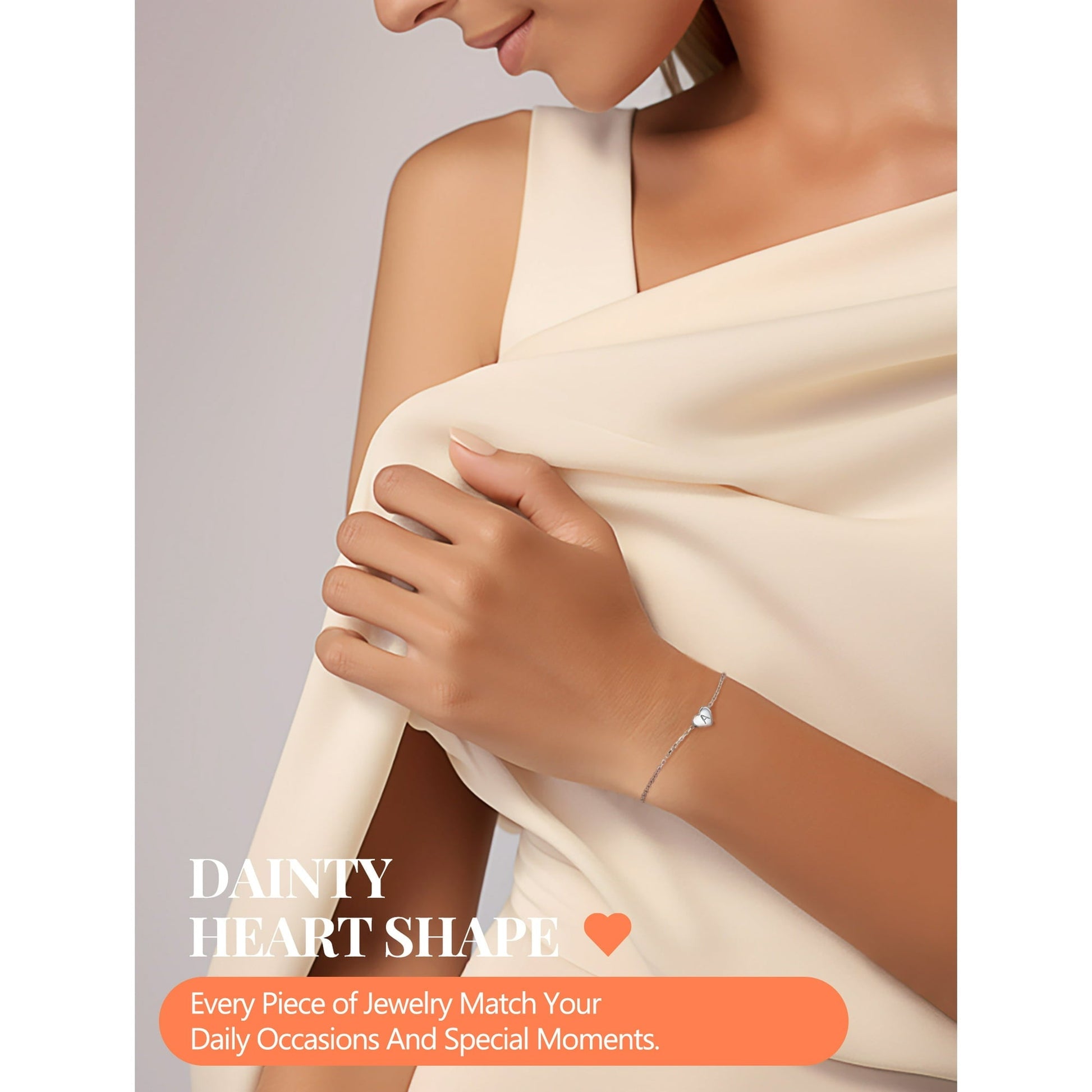 Silvora Initial Heart Bracelet Charms Bracelets 925 Sterling Silver Chain Bracelets for Women - Letter A