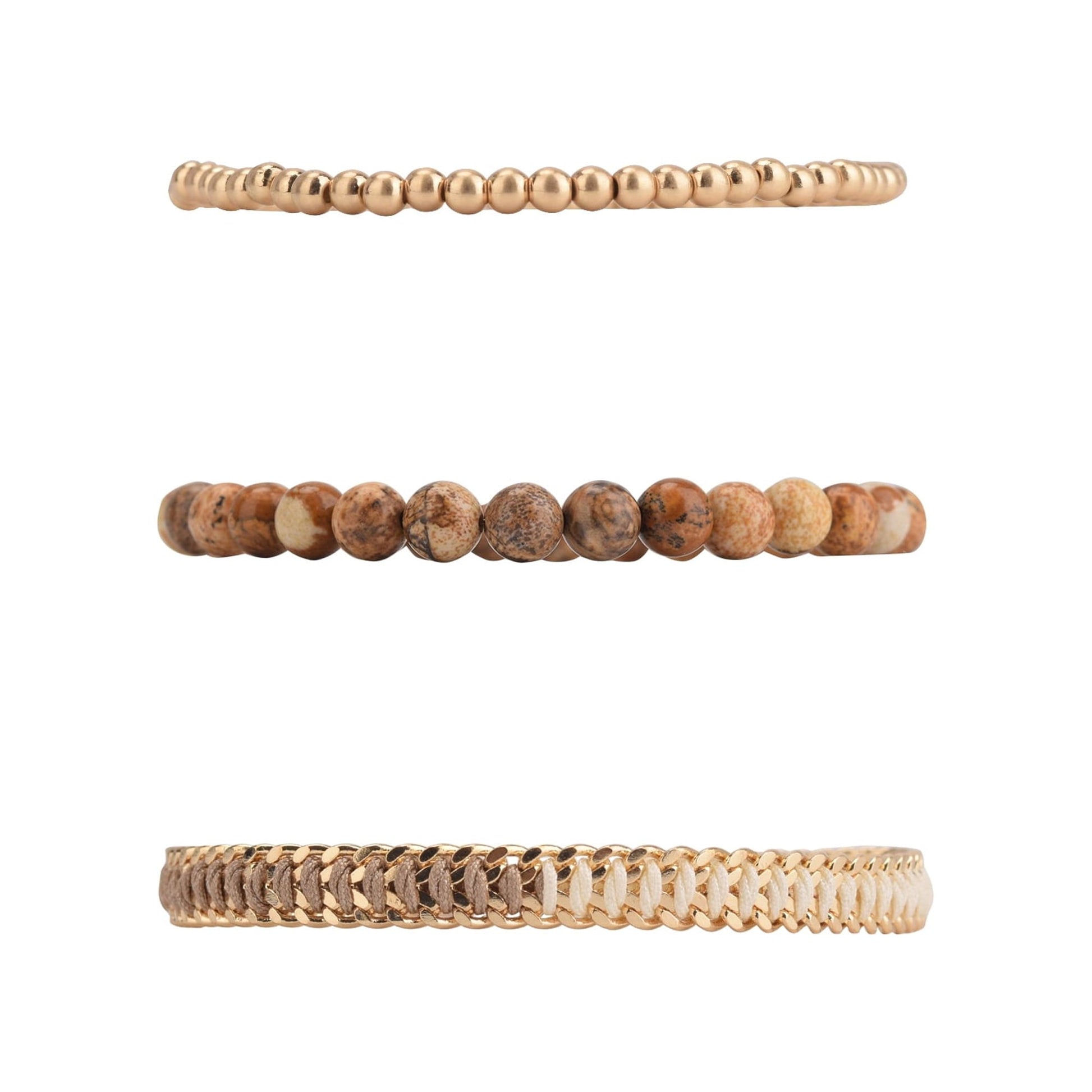 The Pioneer Woman Soft Gold-tone Bracelet Set combines classic elegance with natural beauty, featuring genuine stone beads that offer a unique, earthy charm. Designed for women who appreciate refined style, this set adds subtle warmth and texture to any outfit. Crafted with attention to detail, the bracelets complement each other for versatile layering or individual wear, enhancing your jewelry collection with timeless sophistication.