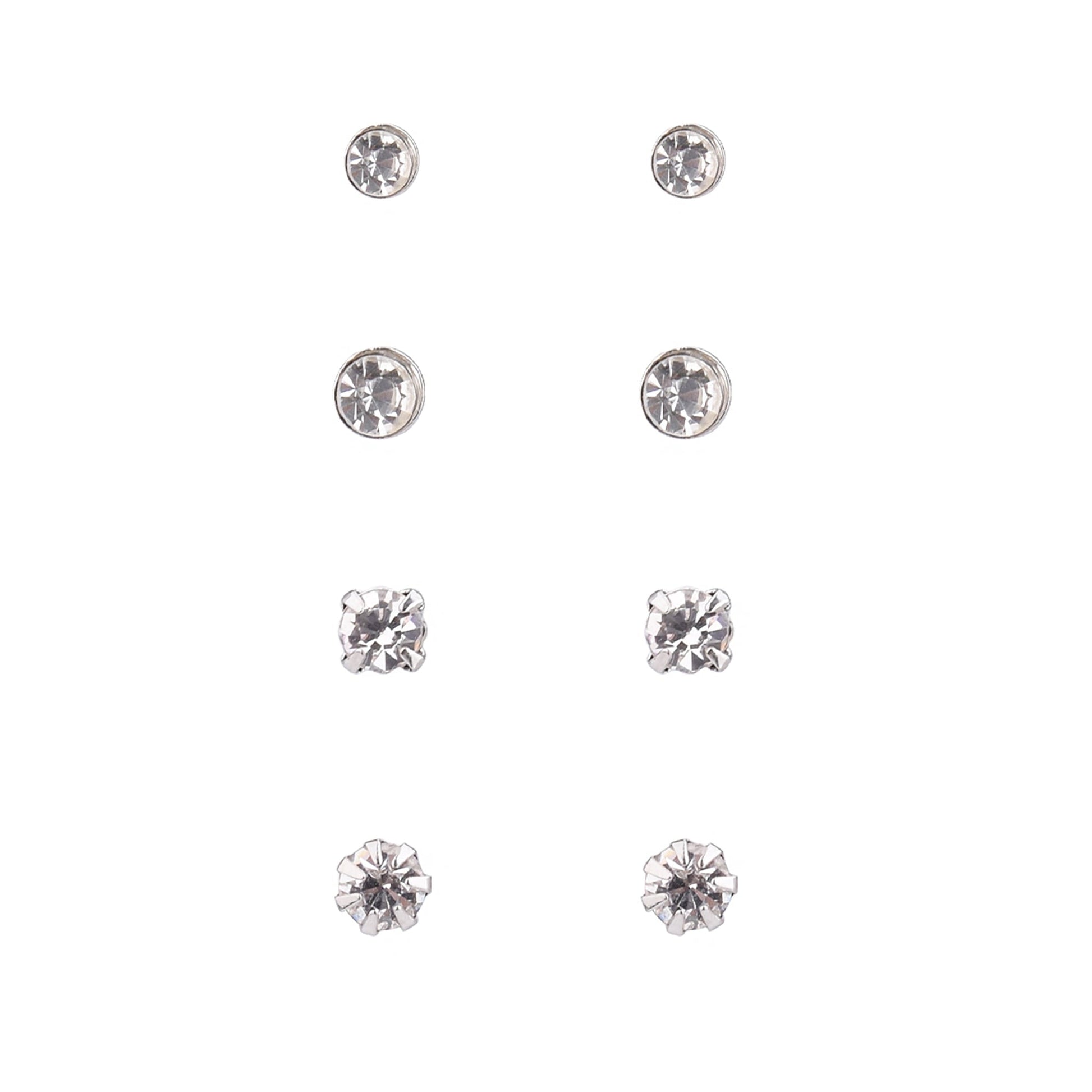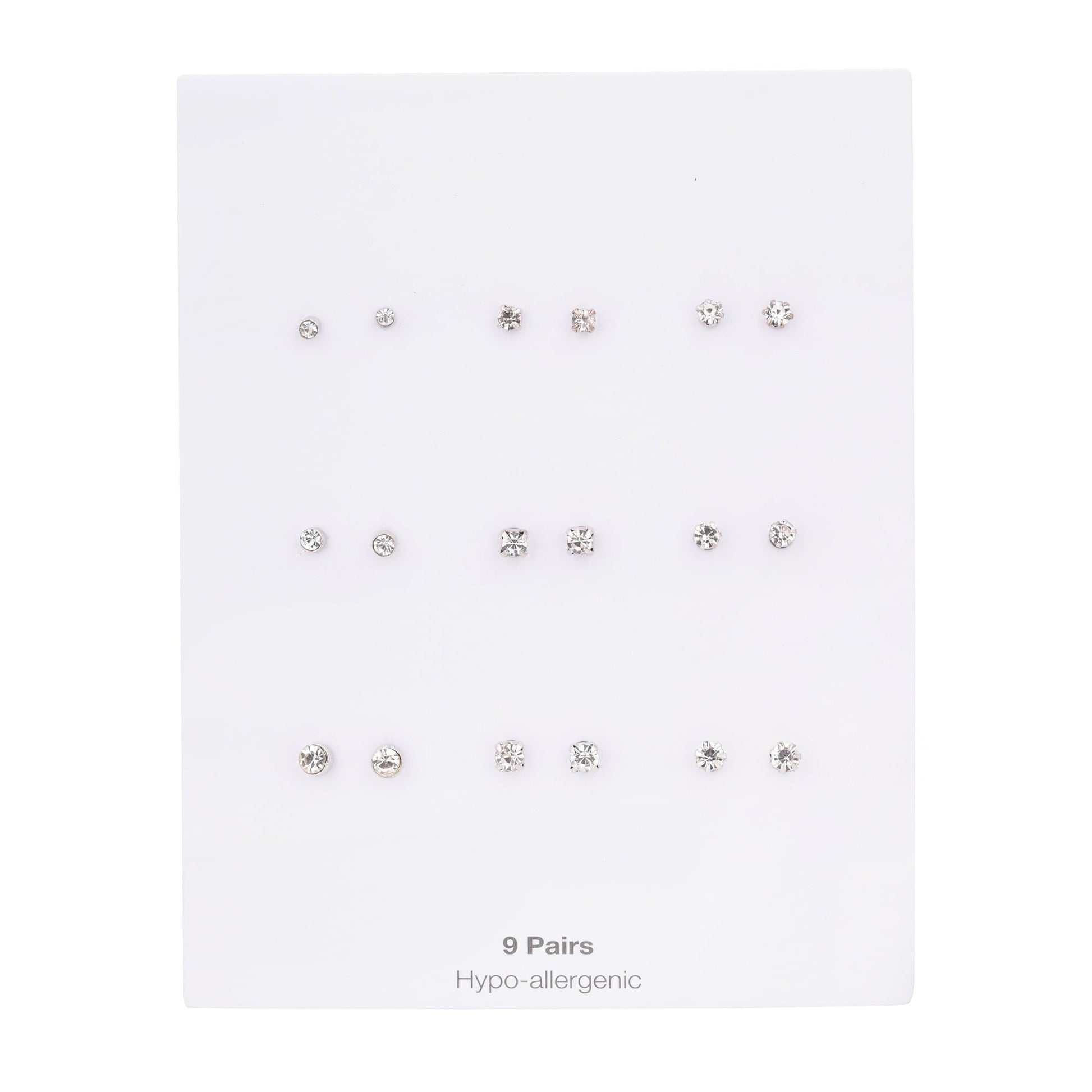 Time and Tru Adult Women's 9 Pair Silver Tone Crystal Stud Metal Earrings Set